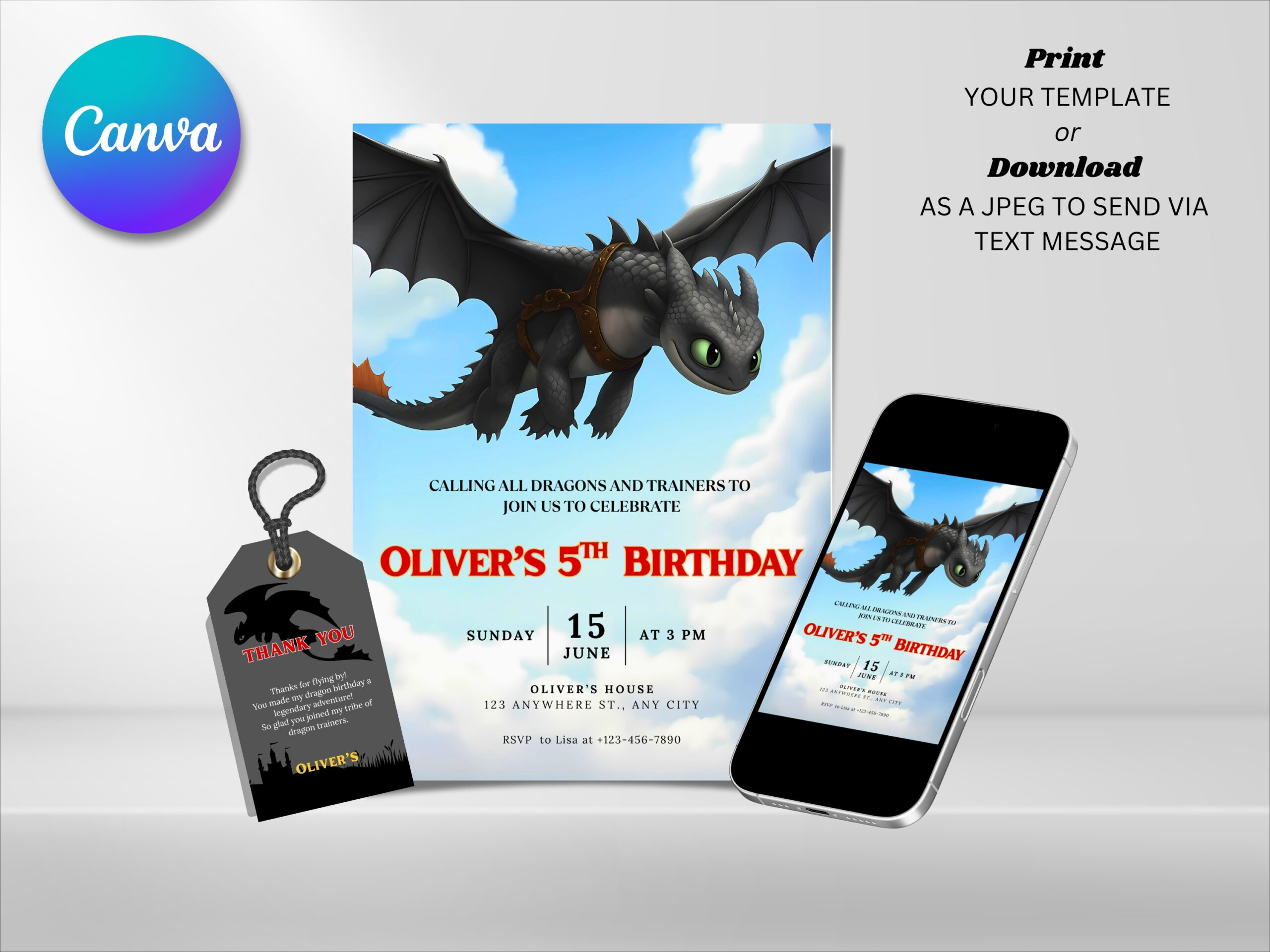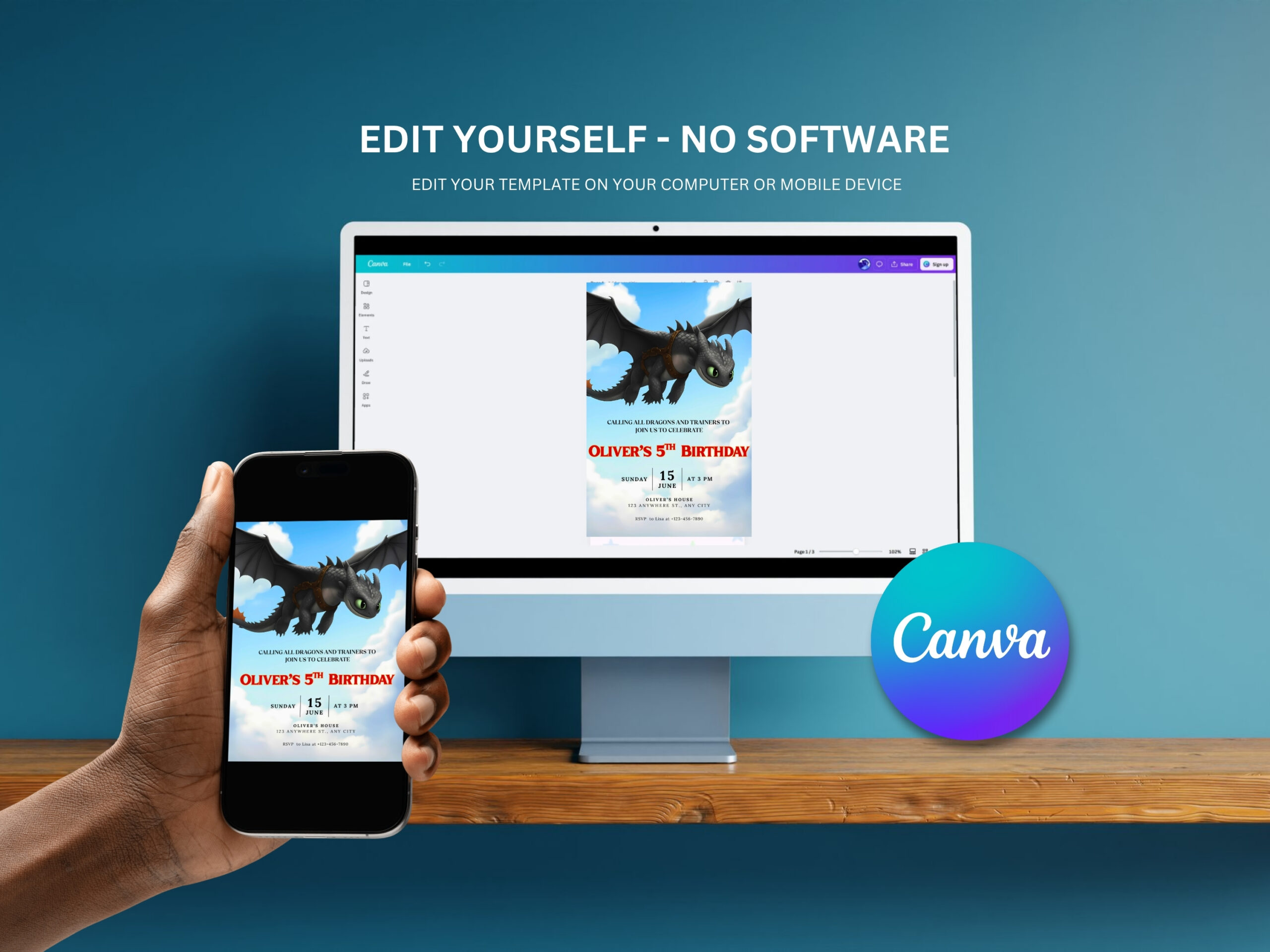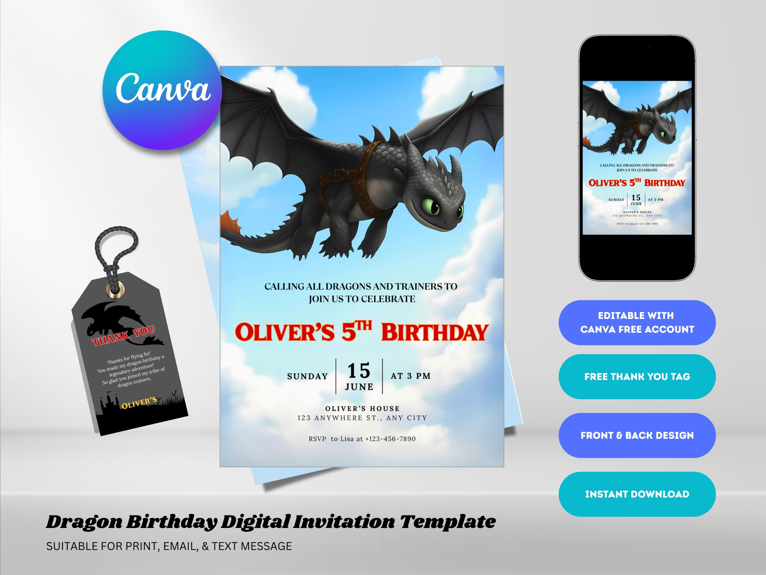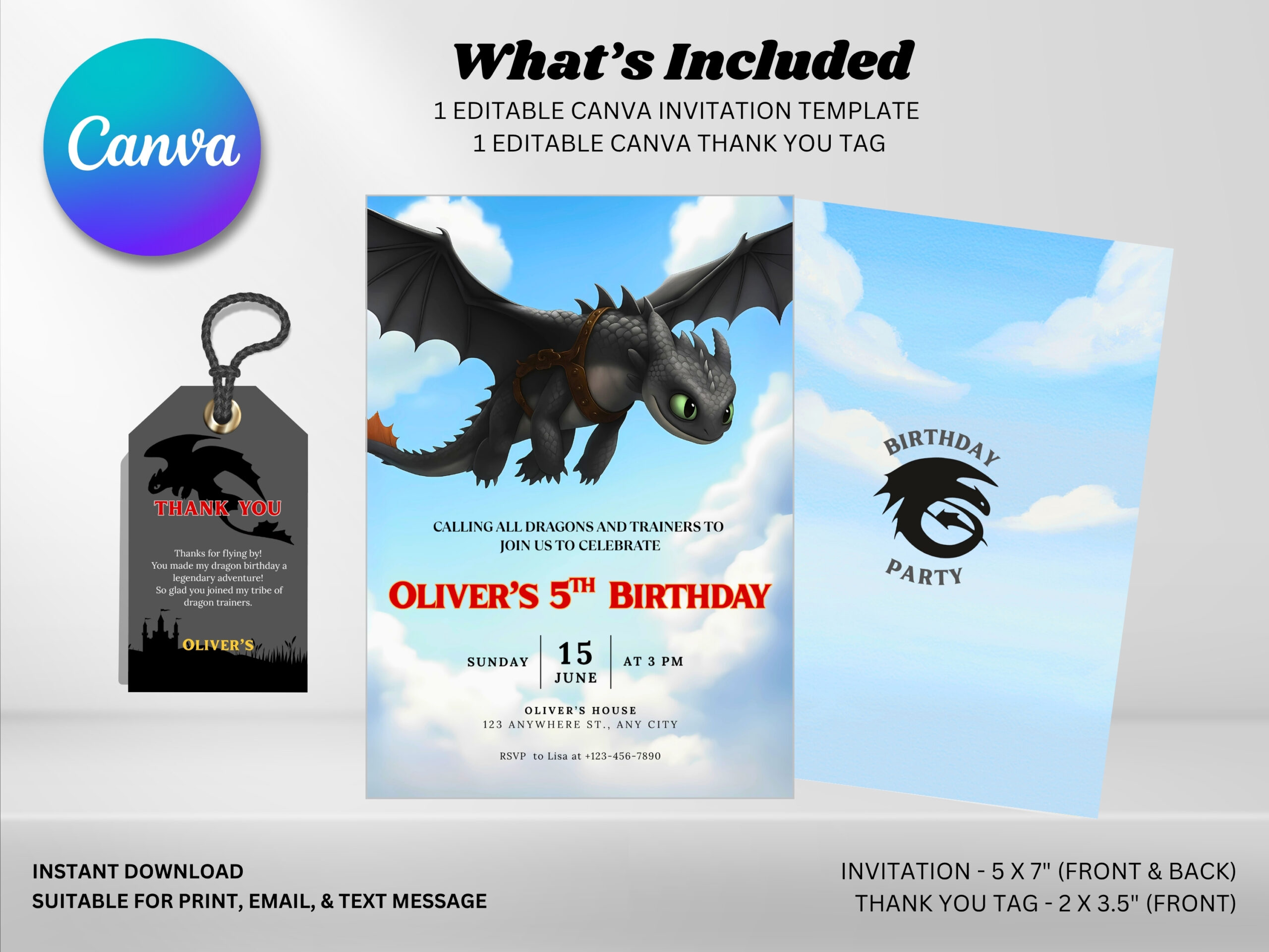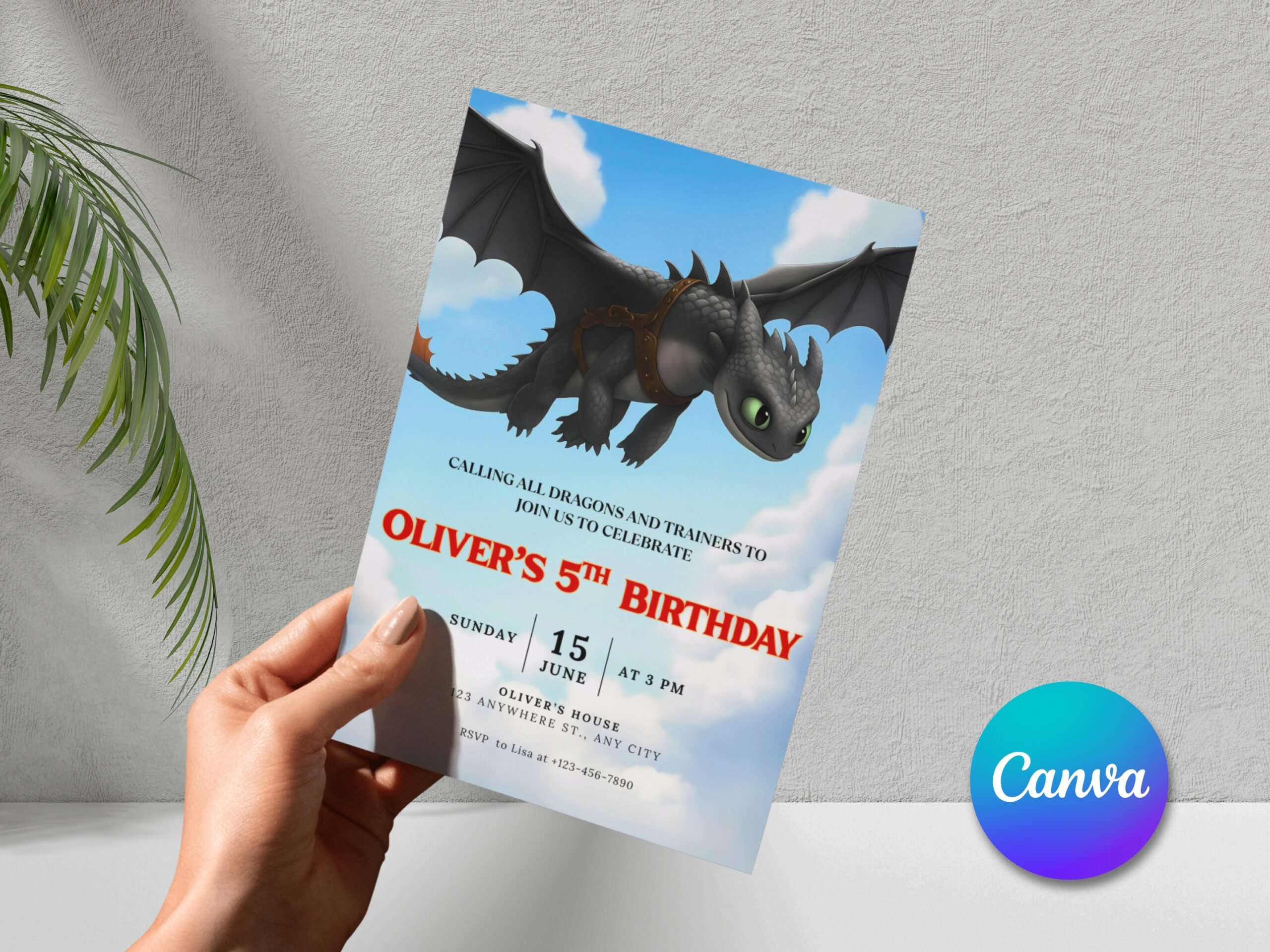 Editable Dragon Birthday Invitation, Toothless Birthday Invitation Canva Template, Digital Direct DownloadEditable Dragon Birthday Invitation, Toothless Birthday Invitation Canva Template, Digital Direct Download