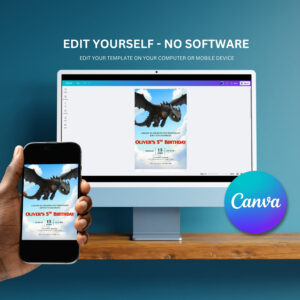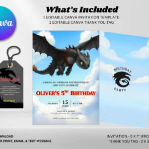 Be the first to review “Editable Dragon Birthday Invitation, Toothless Birthday Invitation Canva Template, Digital Direct Download”