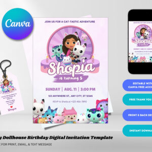 Be the first to review “Editable Gabbys Dollhouse Birthday Invitation, Birthday Invitation Canva Template, Digital Direct Download”
