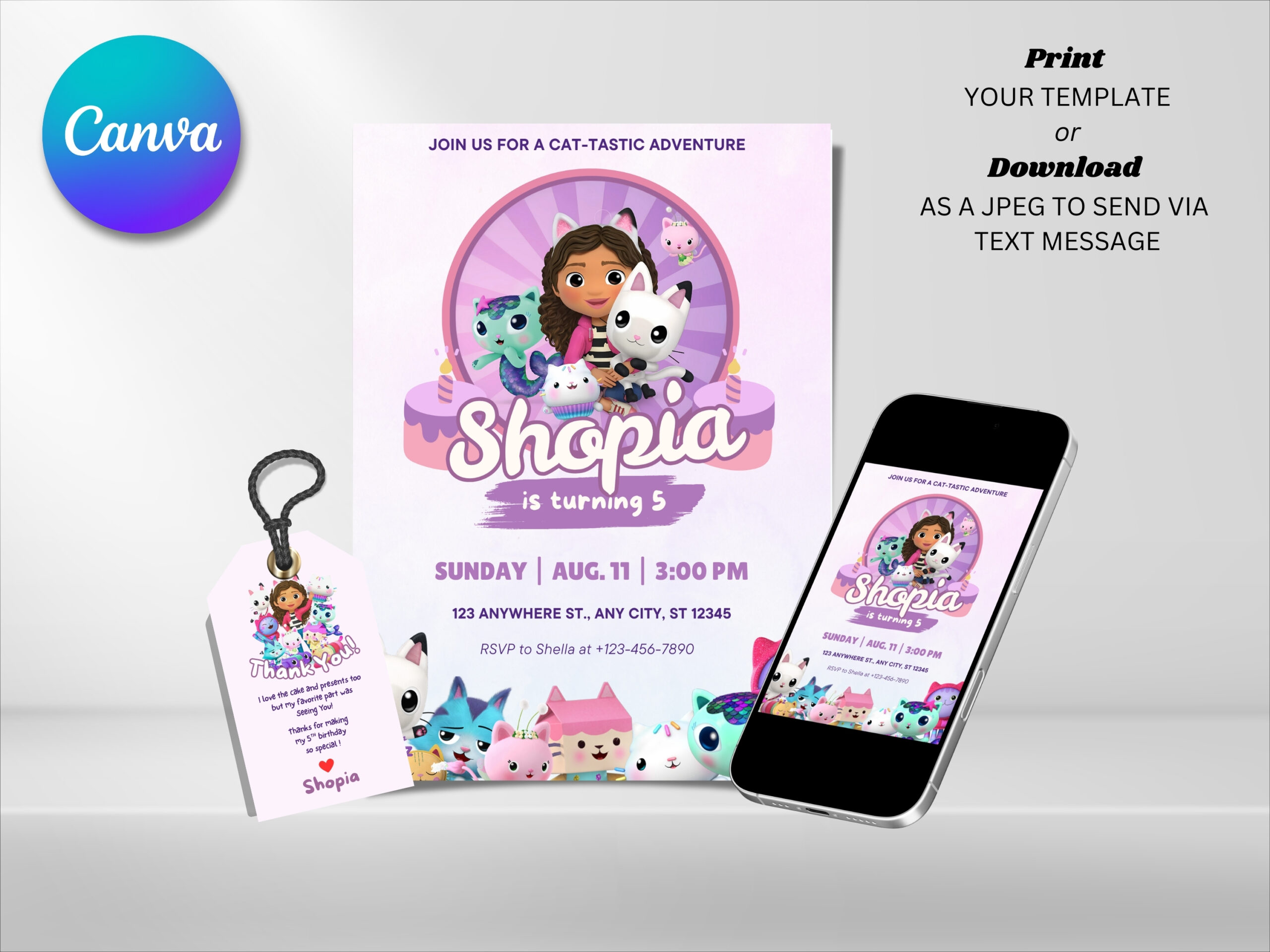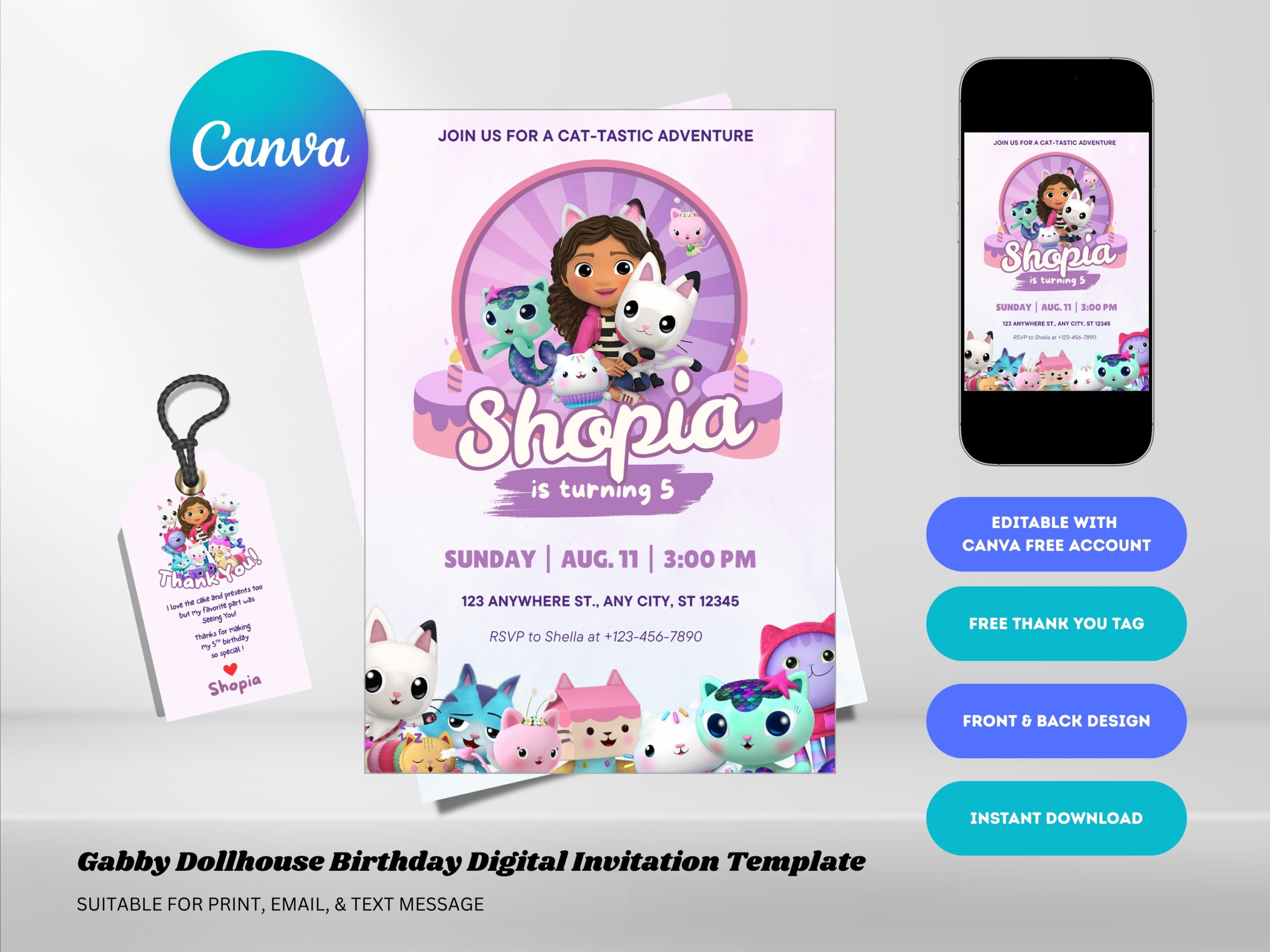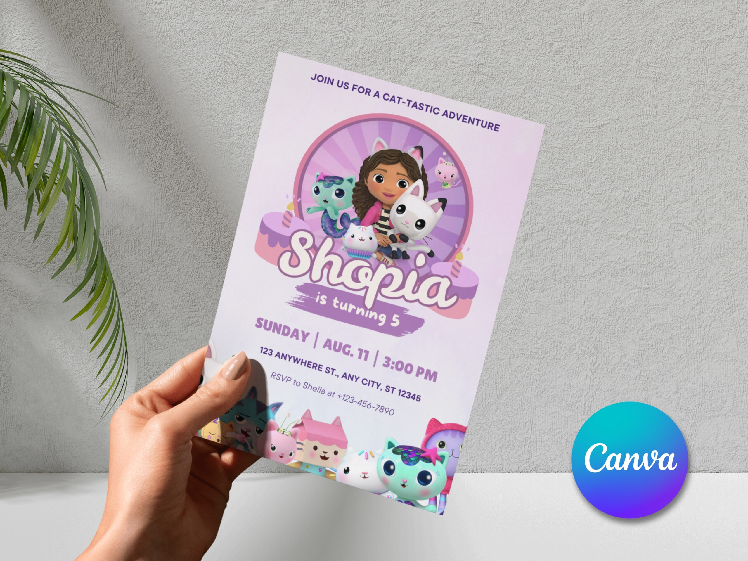 Editable Gabbys Dollhouse Birthday Invitation, Birthday Invitation Canva Template, Digital Direct Download