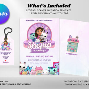 Editable Gabbys Dollhouse Birthday Invitation, Birthday Invitation Canva Template, Digital Direct DownloadEditable Gabbys Dollhouse Birthday Invitation, Birthday Invitation Canva Template, Digital Direct Download