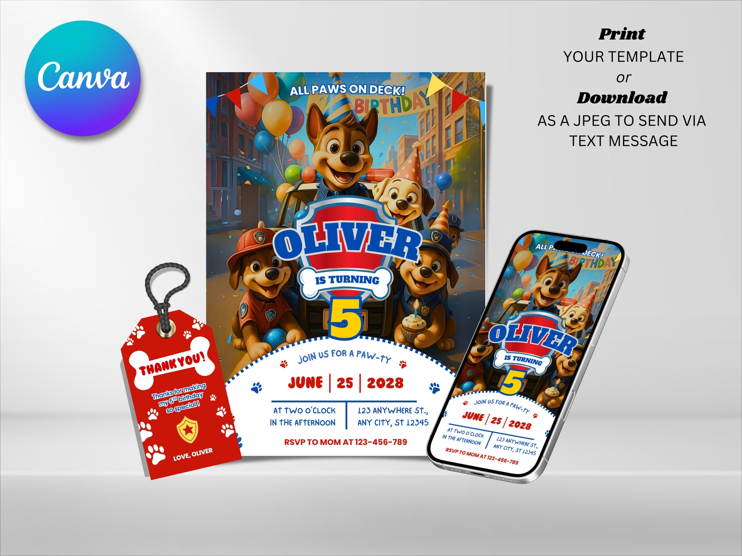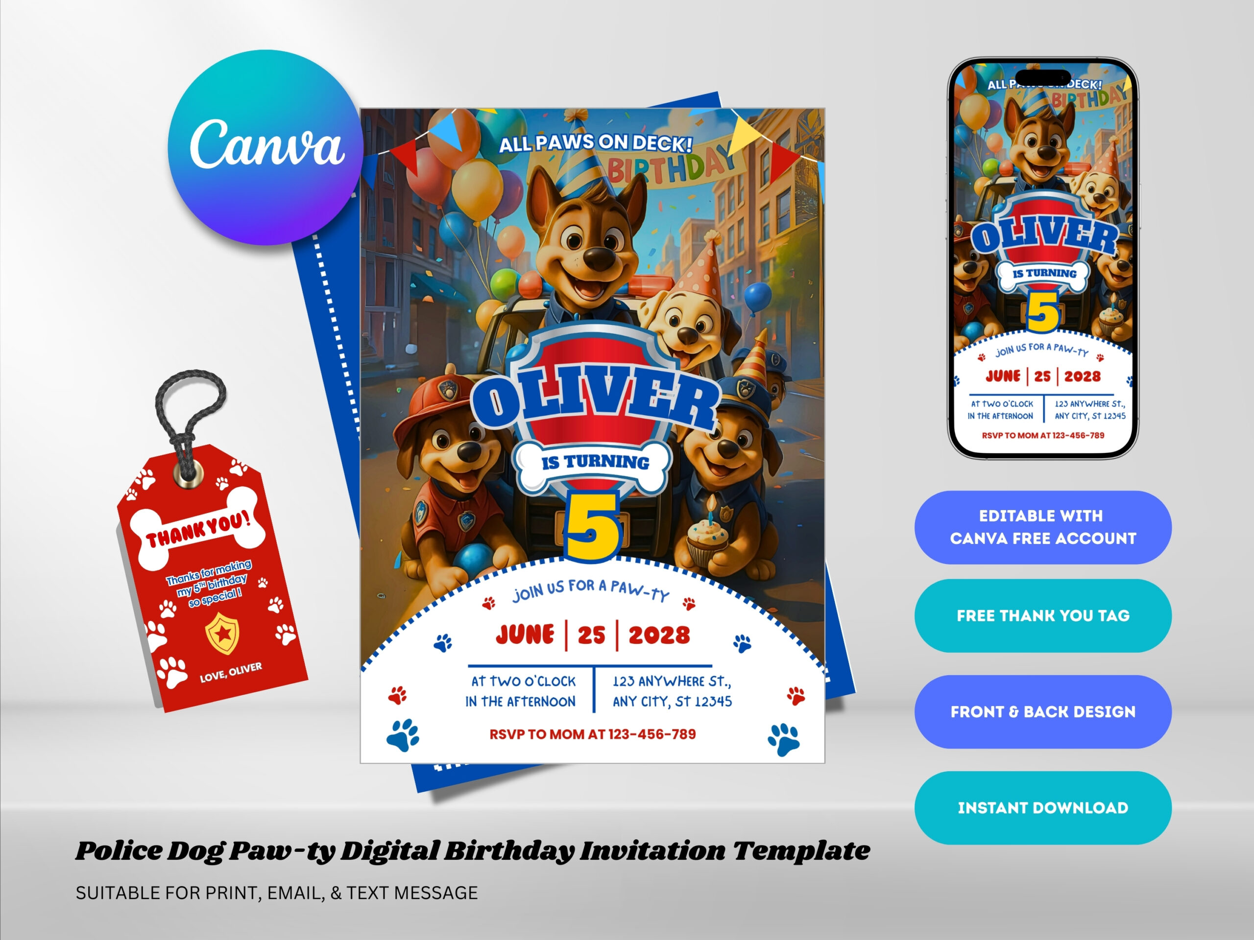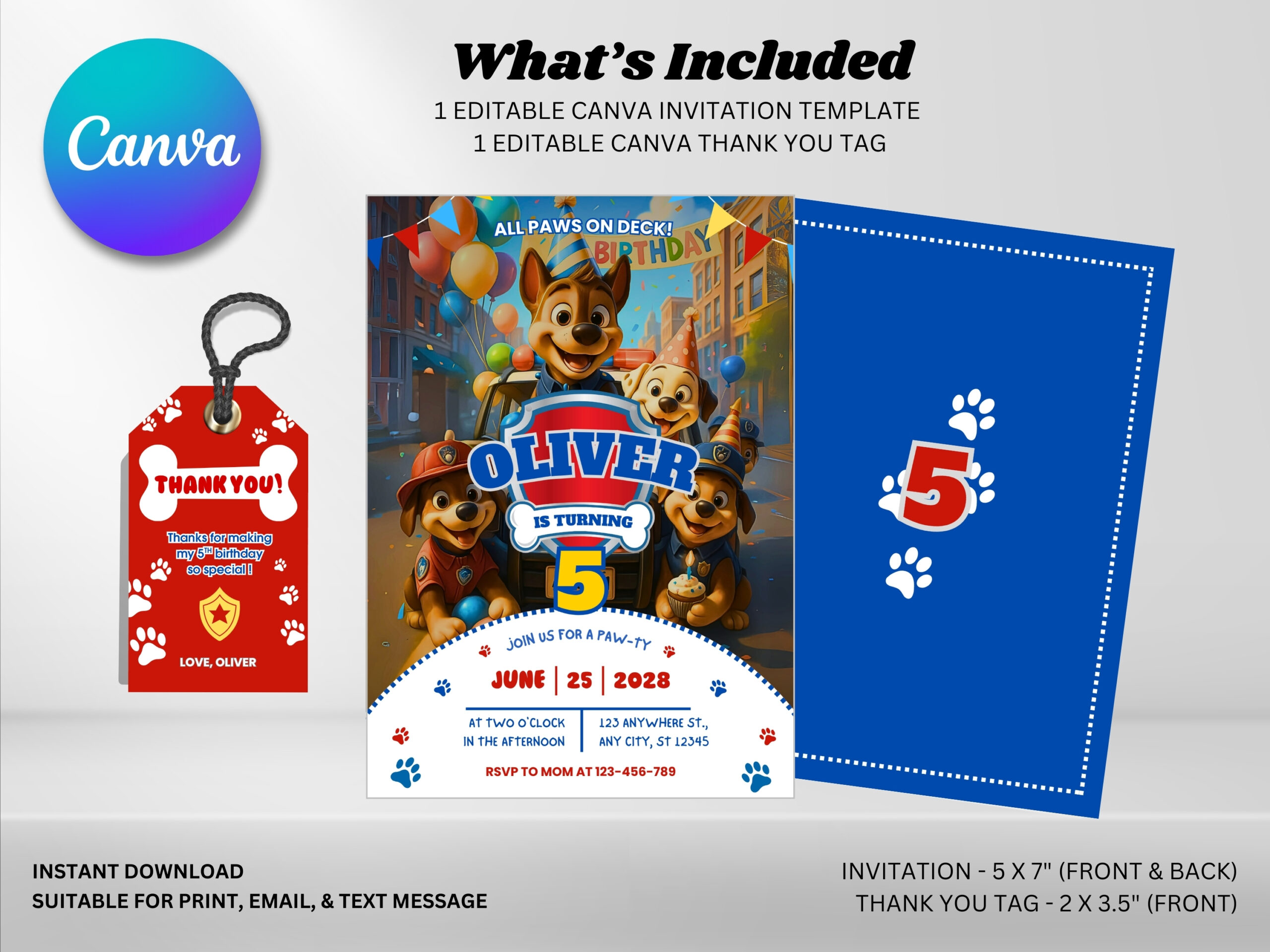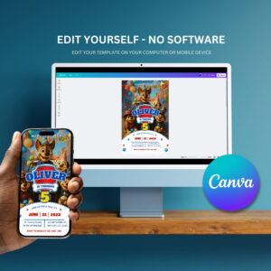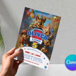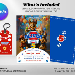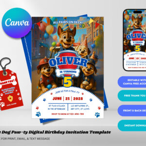 Create an exciting and adorable birthday invitation with this Paw Patrol Birthday Invitation Canva Template! Designed with a fun rescue puppy theme, this digital invitation is perfect for kids who love Paw Patrol adventures.